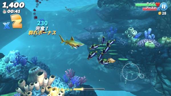 美しい3Dの海洋ステージを探索しながら、サメの食欲を満たす爽快感とスリルを体験できます。