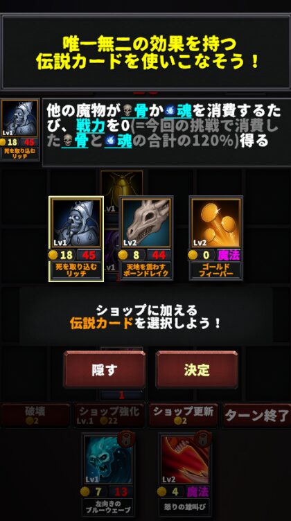 ・モンスターやカード強化による戦略的プレイ